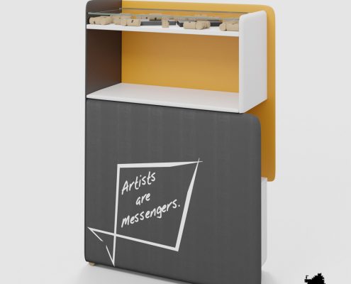 The Messengers from Space are ready to share their secrets to make us better humans! We chose Sara for this model, but you can choose your own message and messenger to create an exclusive piece of furniture that will make the world a better place to live!